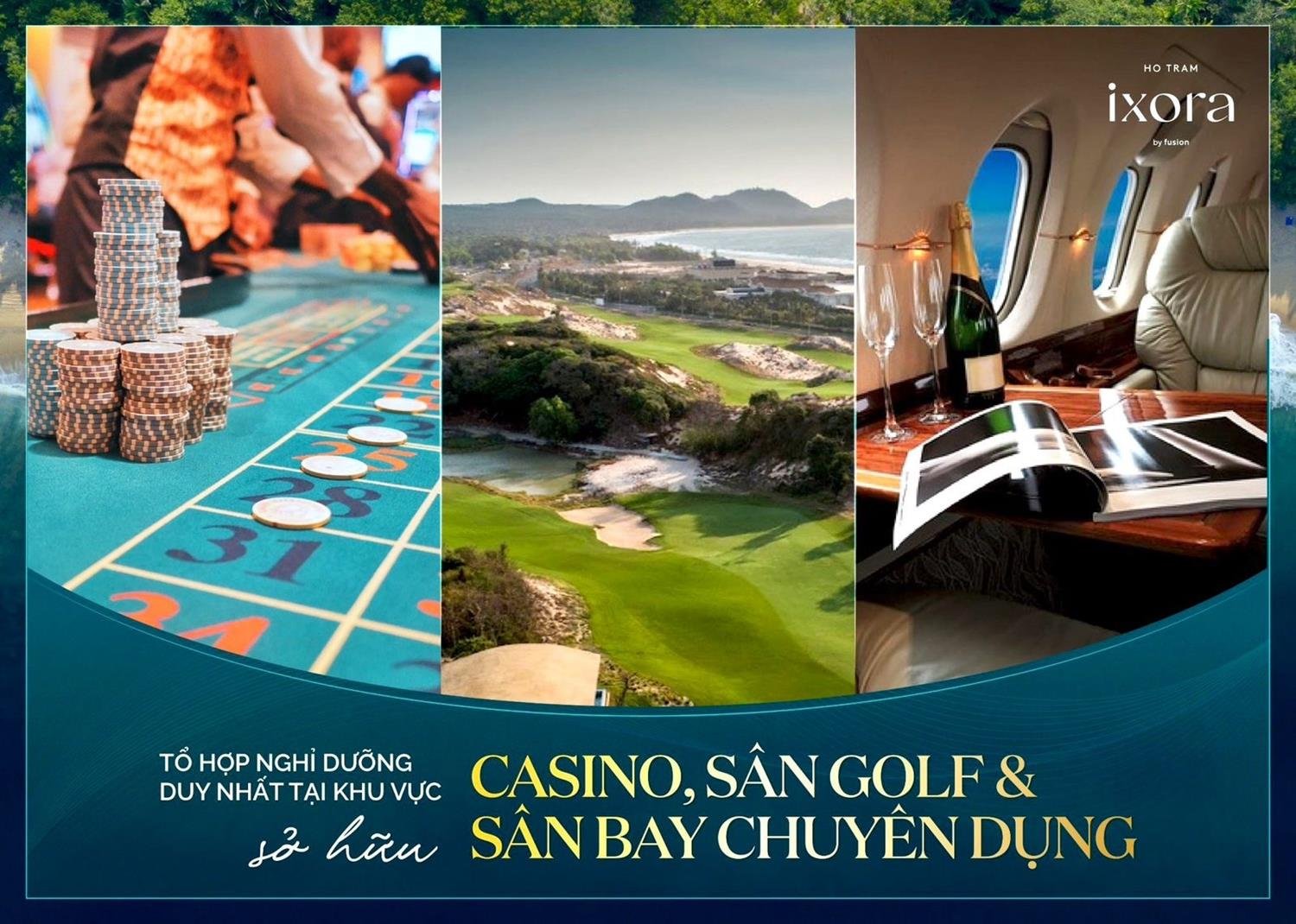 - Hệ thống tiện ích nội khu và ngoại khu như sân golf The Bluffs, casino quốc tế, khách sạn InterContinental Grand Ho Tram, và Holiday Inn Resort.