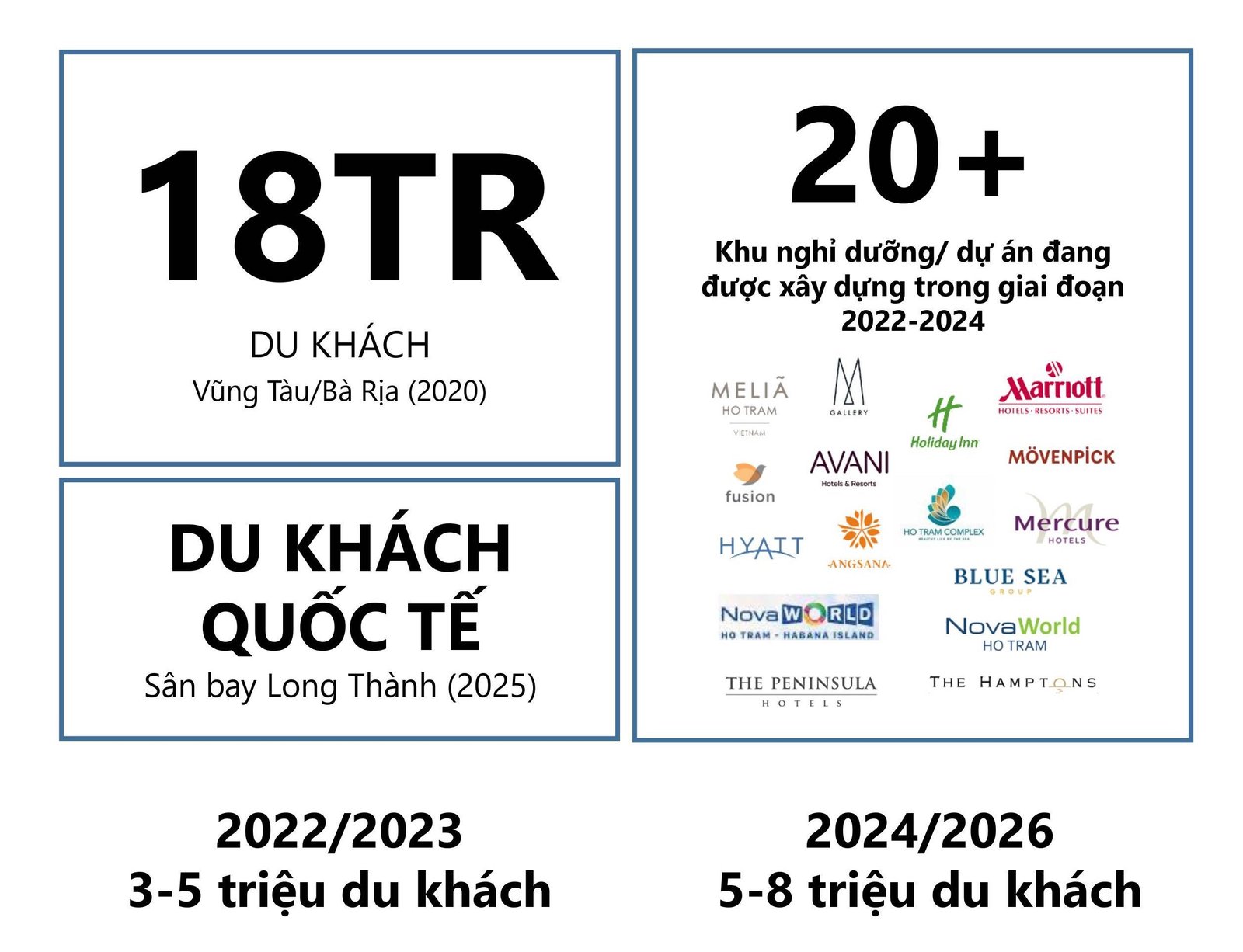 ✅ Đặc biệt quan trọng: Sân bay Long Thành sẽ hoạt động vào 2026, đây là cảng trung chuyển quốc tế nên lượng lớn du khách khi dừng chân ở sân bay có thể đến thẳng Hồ Tràm nghỉ dưỡng, vui chơi, giải trí chỉ với 30 phút kết nối.
